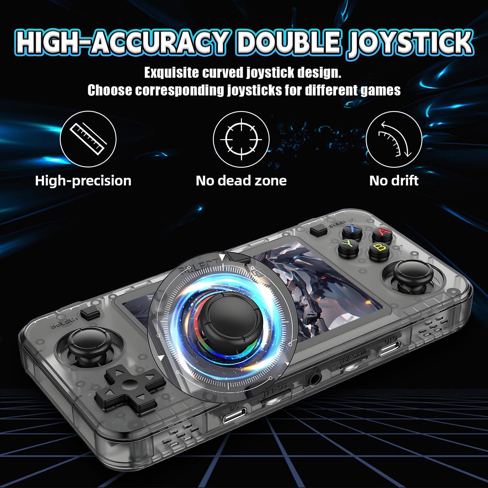 【Powerful Performance】Equipped with a quad-core 32-bit ARM Cortex-A35, the RK3326 processor runs at 1.5GHz. This ensures fast performance for classic games with minimal lag. Dual TF slots enable convenient upgrades and safe game saves, making the R36H handheld game console a powerful retro game console for any gaming scenario.